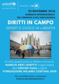 MILANO, 18 NOVEMBRE 2025 – UNICEF Italia celebra il 20 novembre – Giornata Mondiale dell’Infanzia e dell’Adolescenza – con la Marcia dei Diritti di Milano, organizzata quest’anno nell’ambito del Programma Education Gen26 della Fondazione Milano Cortina 2026, con lo slogan ‘Diritti in campo, sport e gioco in libertà’.