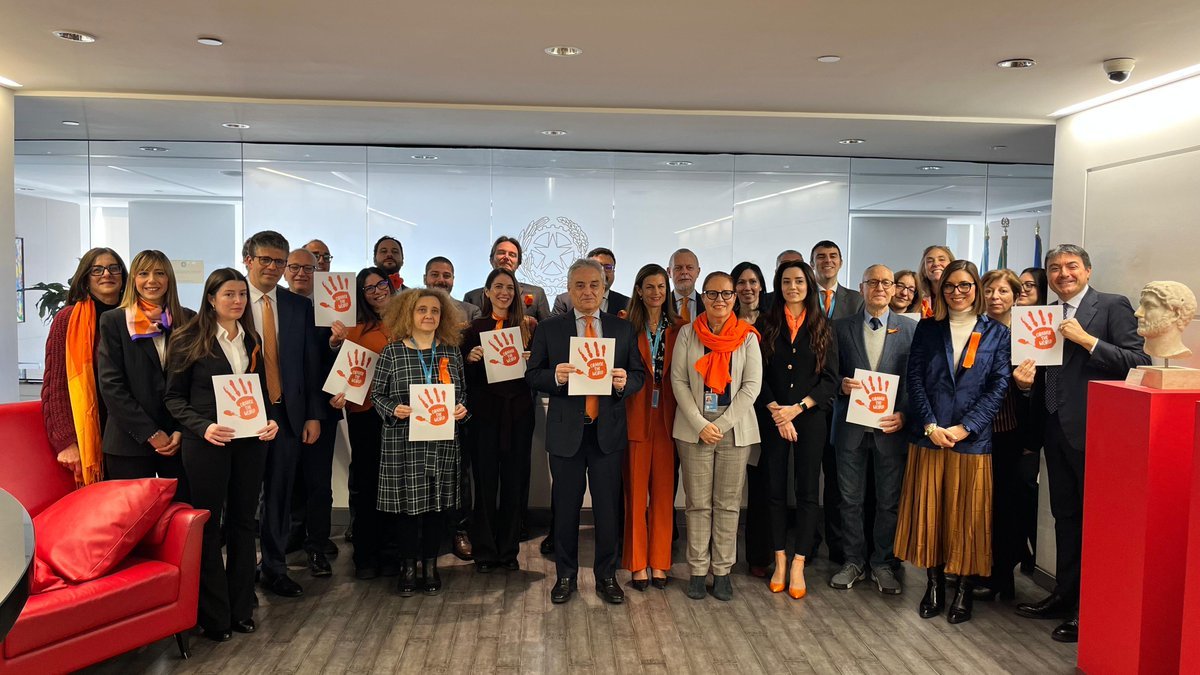 In un gesto simbolico, i membri della delegazione italiana all’Onu guidata dall’Ambasciatore Maurizio Massari hanno indossato accessori color arancione per ribadire “il suo incrollabile impegno a promuovere i diritti delle donne, a combattere ogni forma di discriminazione e di violenza di genere, pilastro della sua politica estera, come previsto anche dal V Piano Nazionale per l’attuazione dell’Agenda ONU su Donne, Pace e Sicurezza”. Un messaggio ribadito a Ginevra dal Rappresentante Permanente Vincenzo Grassi in un intrvento ad un evneto organizzato da UN Women.