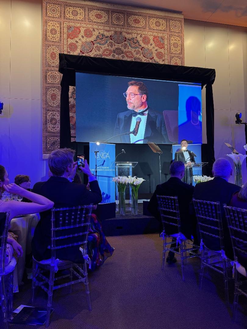 Ed ecco dunque che, tra il Bread Basket of the World (pani di culture diverse da condividere al tavolo “per sentirsi a casa assieme”), al ‘mochi’ al pistacchio che ha chiuso il gala creando un ponte tra Est e Ovest, si e’ parlato della ricerca della verita’ contro tutte le censure, del dramma di Gaza e della crisi del clima, temi cari a Javier Bardem, l’attore Academy Award per No Country for Old Men, premiato dall’UNCA come come Global Citizen of the Year mentre l’onore del Global Advocate of the Year e’ andato a Massimo Bottura di Osteria Francescana, entrato nel 2020 nella famiglia Onu come ambasciatore del programma per l’ambiente Unep per l’impegno nella lotta agli sprechi e per l’inclusione sociale e poi, dall’anno scorso, tra i difensori degli Sdgs, gli obiettivi per lo sviluppo sostenibile che l’Onu si e’ prefisso di raggiungere entro 2030.