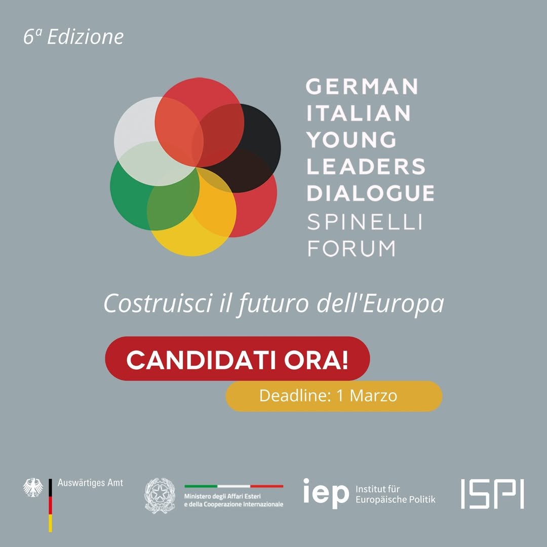 MILANO, 16 FEBBRAIO 2026 – Sono aperte le candidature per il German-Italian Young Leaders Dialogue – Spinelli Forum 2026, iniziativa congiunta del Ministero degli Esteri tedesco (Auswärtiges Amt) e del MAECI, in partnership con Institut für Europäische Politik (IEP) e ISPI. Il programma è rivolto a giovani italiani e tedeschi tra i 25 e i 35 anni interessati a contribuire con idee e proposte al futuro dell’Unione europea.